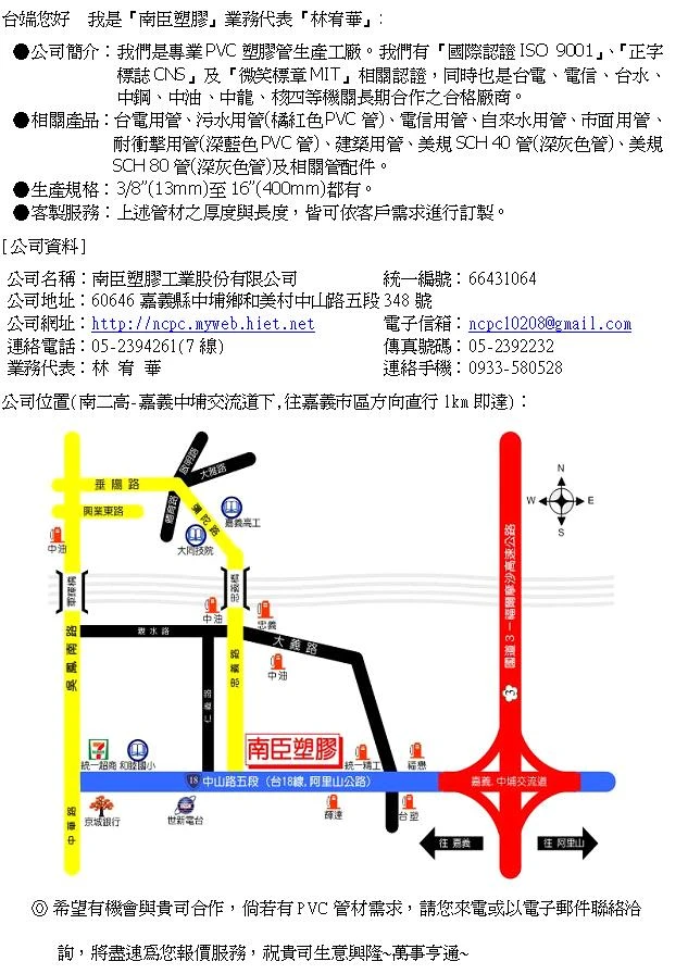 公司網址:http://ncpc.myweb.hinet.net 電子信箱:ncpc10208@gmail.com